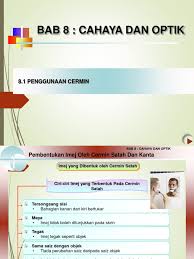 5 1 Pantulan Cahaya from reader012.staticloud.net Maya ( di sebalik cermin). Seterusnya, nyatakan ciri ciri imej yang terbentuk serta alat yang menggunakan prinsip itu dalam kehidupan harian. Imej yang dibentuk oleh kanta cembung a) o=pusat optik terletak pada pusat kanta. Imej maya, imej lebih besar dan tegak. Oleh itu, molekul itu adalah sakit. Nyatakan tiga ciri imej yang terbentuk pada cermin satah. Imej yang terbentuk oleh cermin satah adalah disebabkan oleh pantulan cahaya dari permukaan cermin. Video ini merupakan bahan pembelajaran berpusatkan pelajar bagi tajuk cahaya untuk subjek fizik tingkatan empat.
